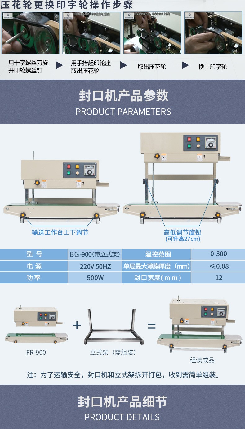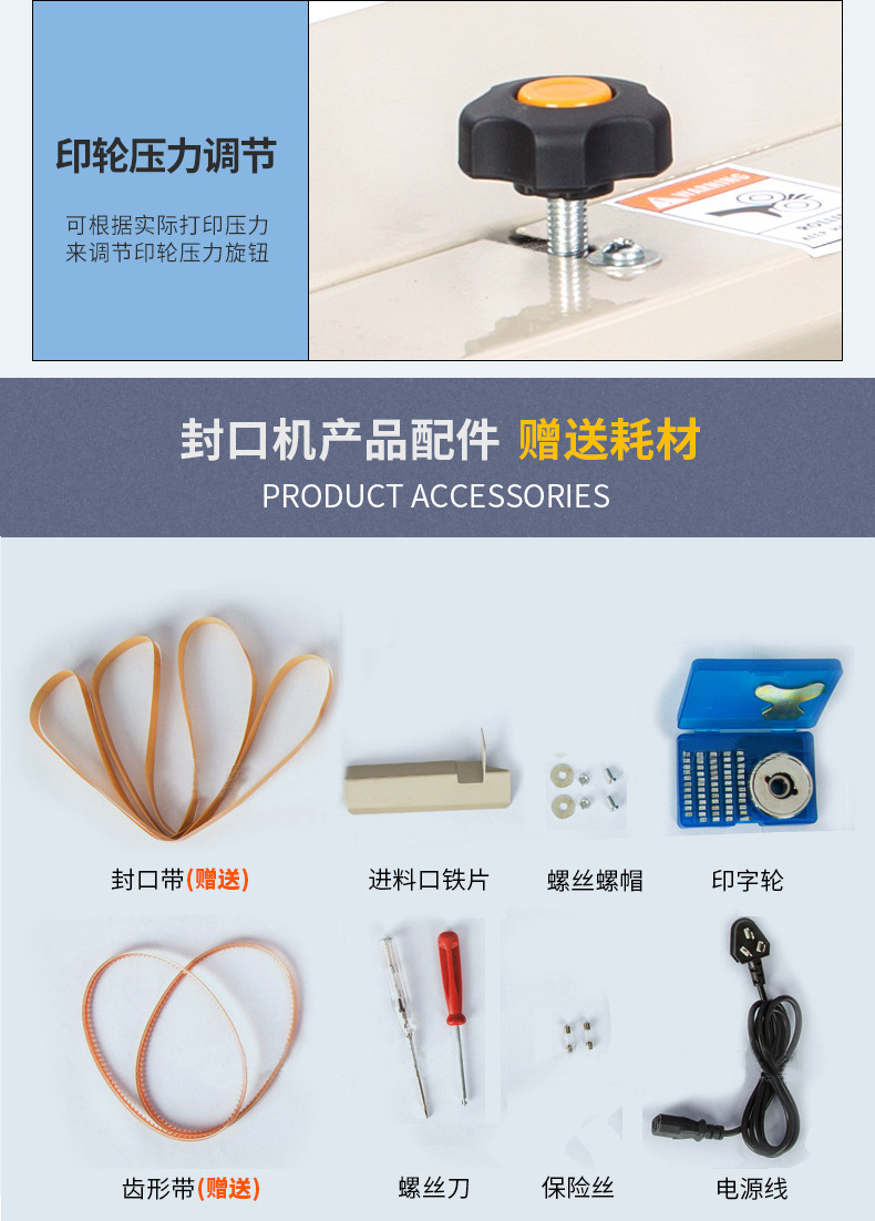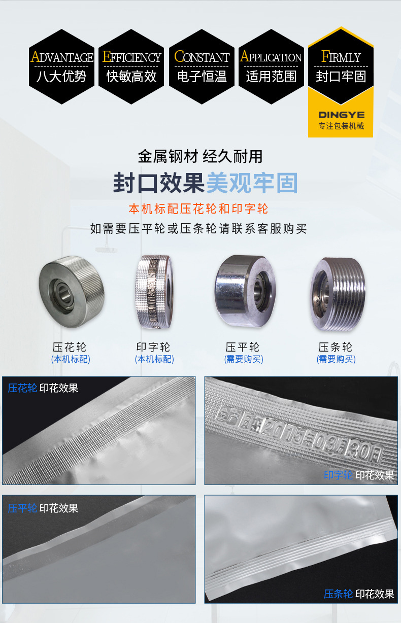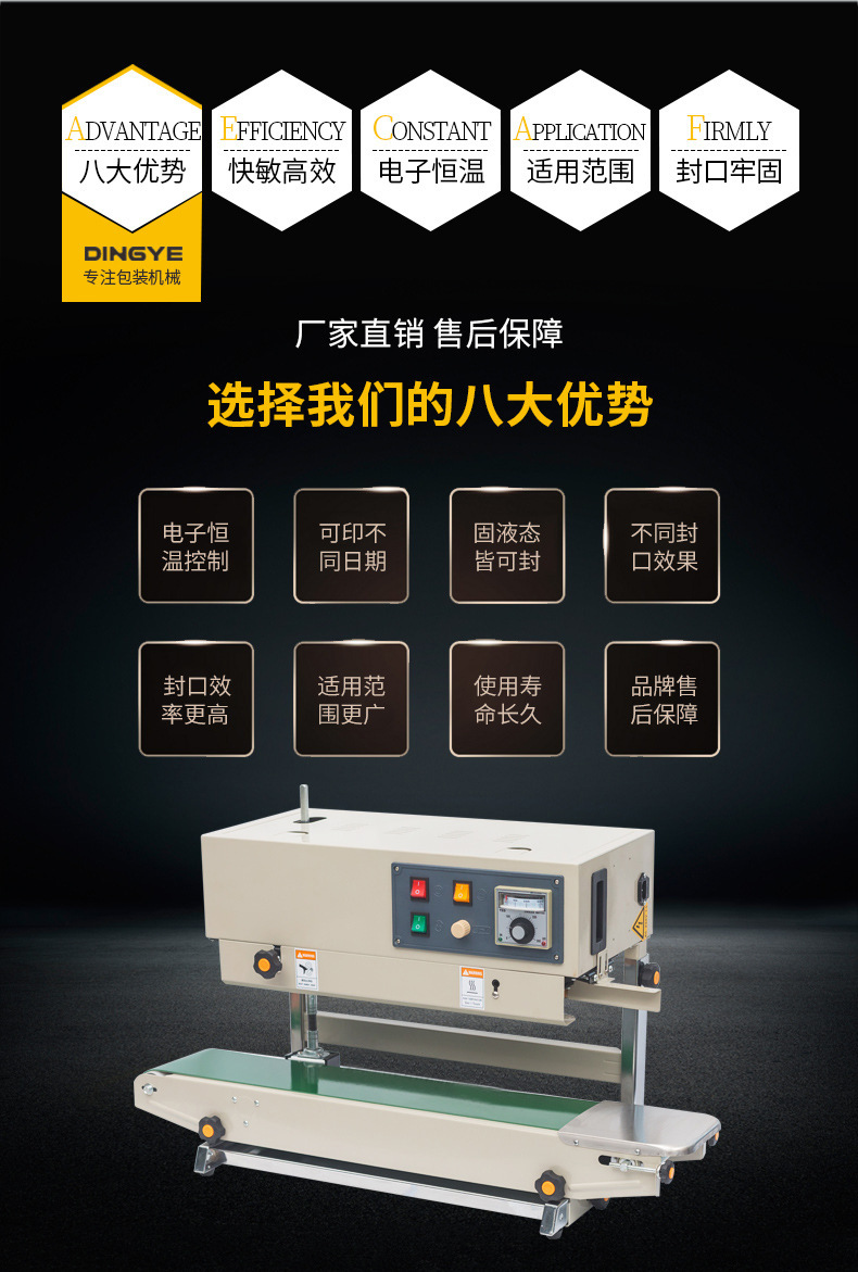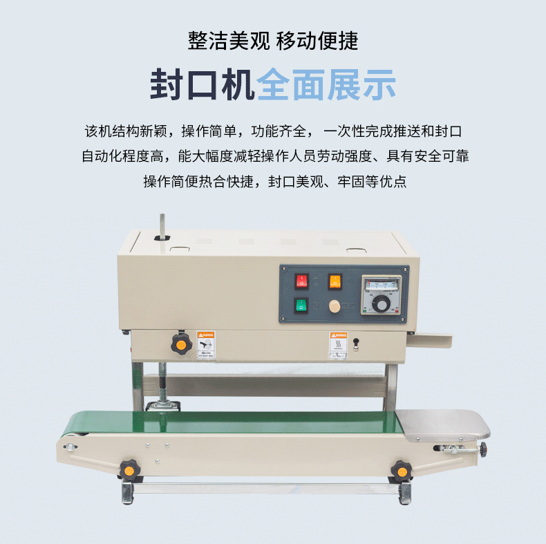 立式封口機可用于各種尺寸的包裝袋,尤其是大型包裝袋的封口作業,如大米、面粉、狗糧等大包裝產品,也適用于液體、粉末、重物等不同類型物料的包裝封口