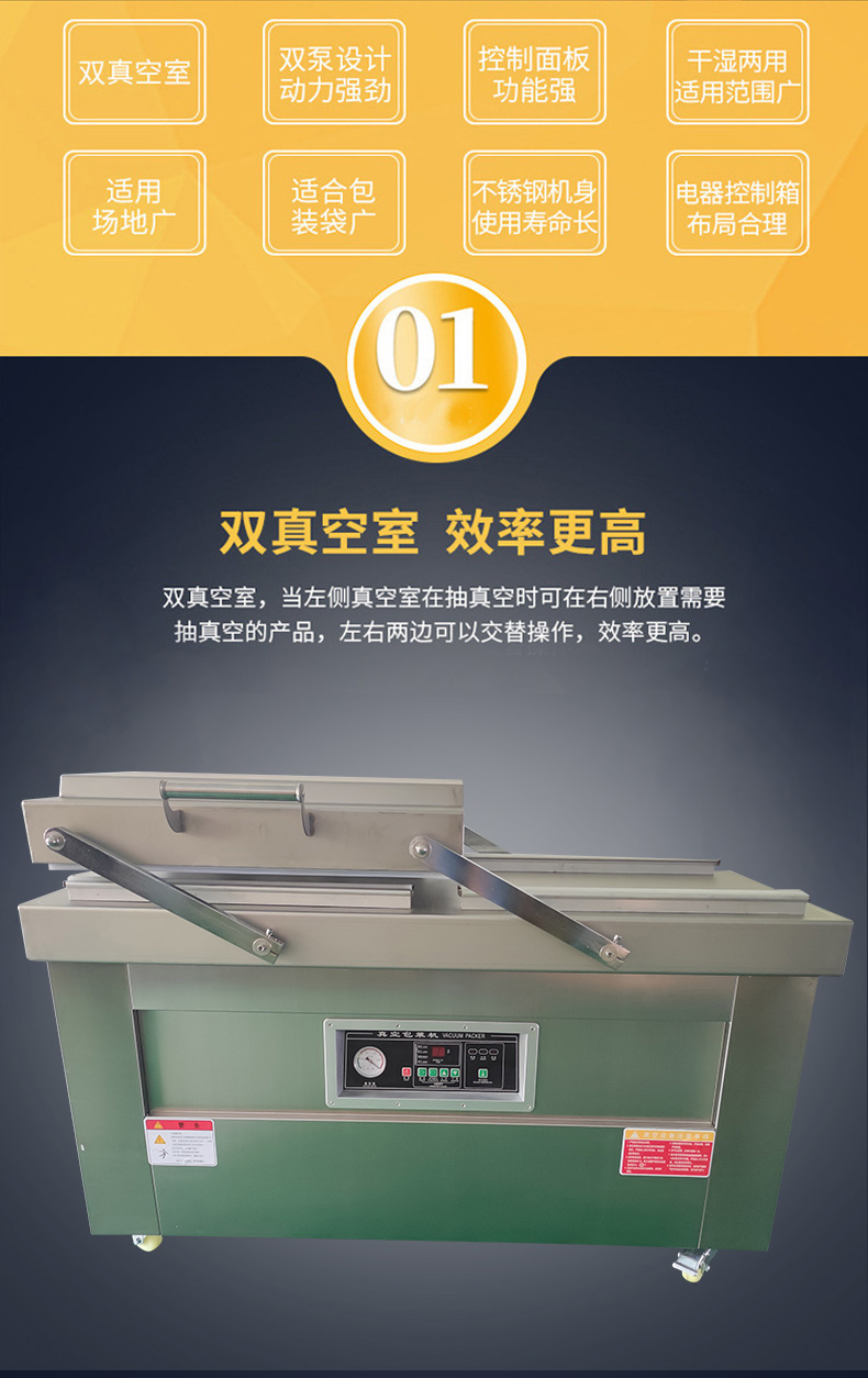 干濕兩用全自動雙室真空包裝機真空封口機鎖住新鮮食品包裝機