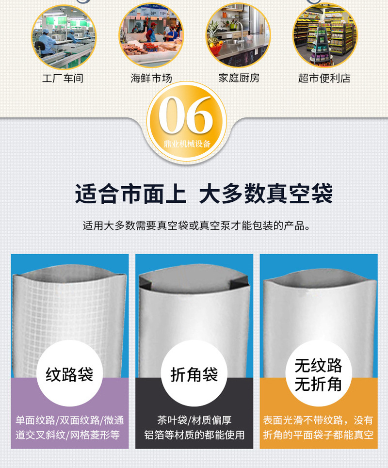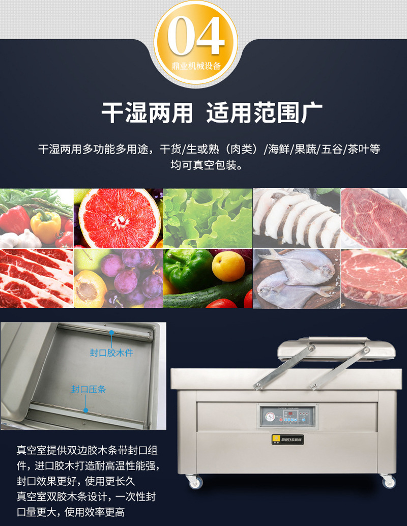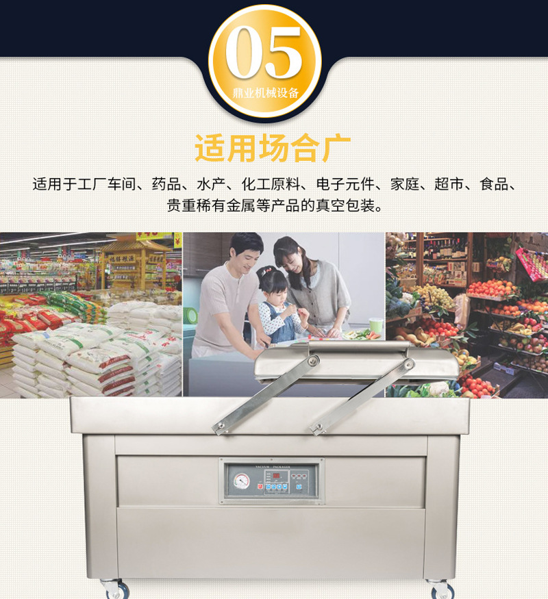- 不僅適用于食品行業(yè),如肉類、水果、蔬菜、熟食等的包裝,還廣泛應(yīng)用于電子、化工、五金等行業(yè),對(duì)各類產(chǎn)品進(jìn)行真空保護(hù)包裝。