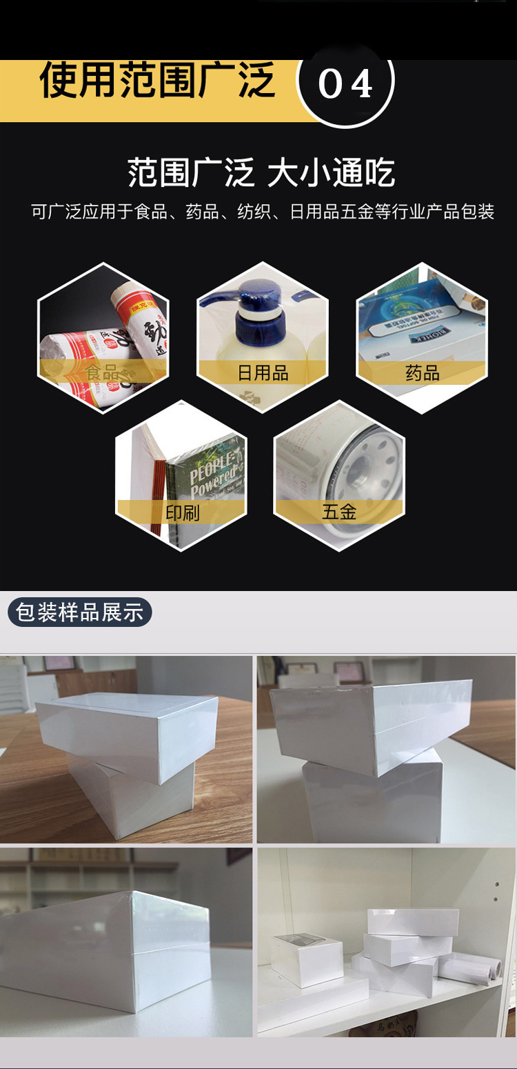 - 適用范圍廣:適用于各種形狀、尺寸的產品包裝,如食品、飲料、藥品、化妝品、文具、玩具等。