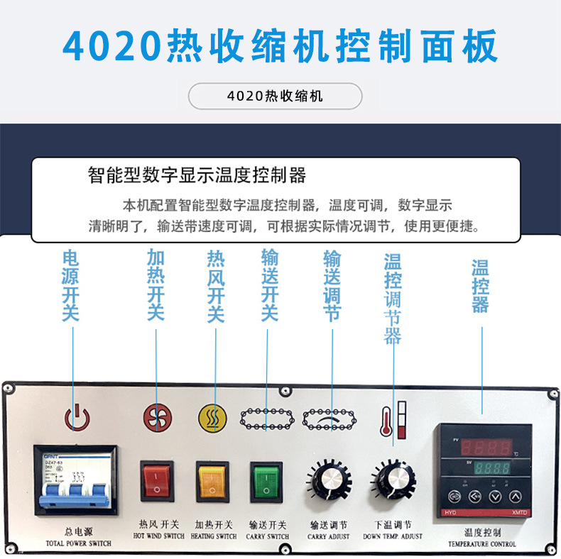 • 加熱裝置:如熱風機、加熱管等,是熱收縮處理的核心部件。它們能夠產生高溫氣流或熱量,使進入熱收縮區域的包裝膜迅速受熱收縮。加熱裝置的加熱功率、溫度分布等特性對于熱收縮效果有著重要影響,需要根據不同的膜材質和產品的特性進行優化設置。