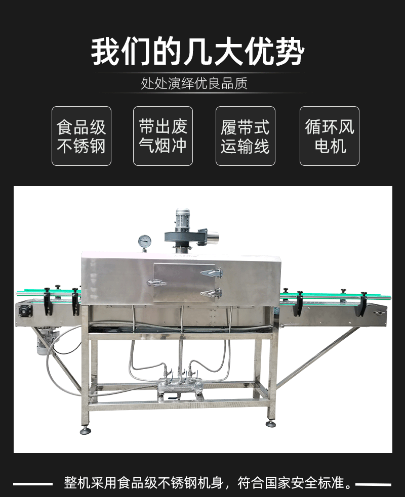 針對性設計:椰子蒸汽收縮機是專門為椰子包裝而設計的設備。由于椰子的形狀不規(guī)則(近似圓形,且有一定的弧度和表面紋理),這種收縮機的熱收縮通道和蒸汽噴頭布局會進行特殊優(yōu)化。例如,蒸汽噴頭的角度可能會被調整,以確保蒸汽能夠均勻地覆蓋椰子表面的各個部分,包括椰子的頂部、底部和側面。