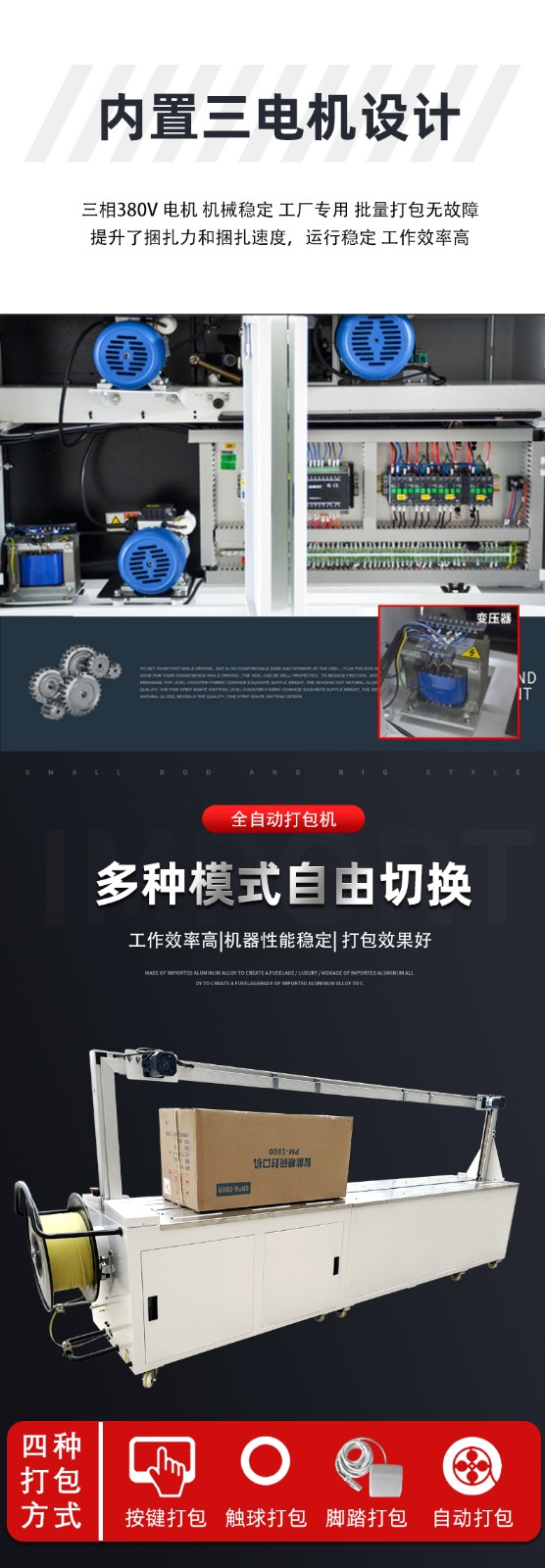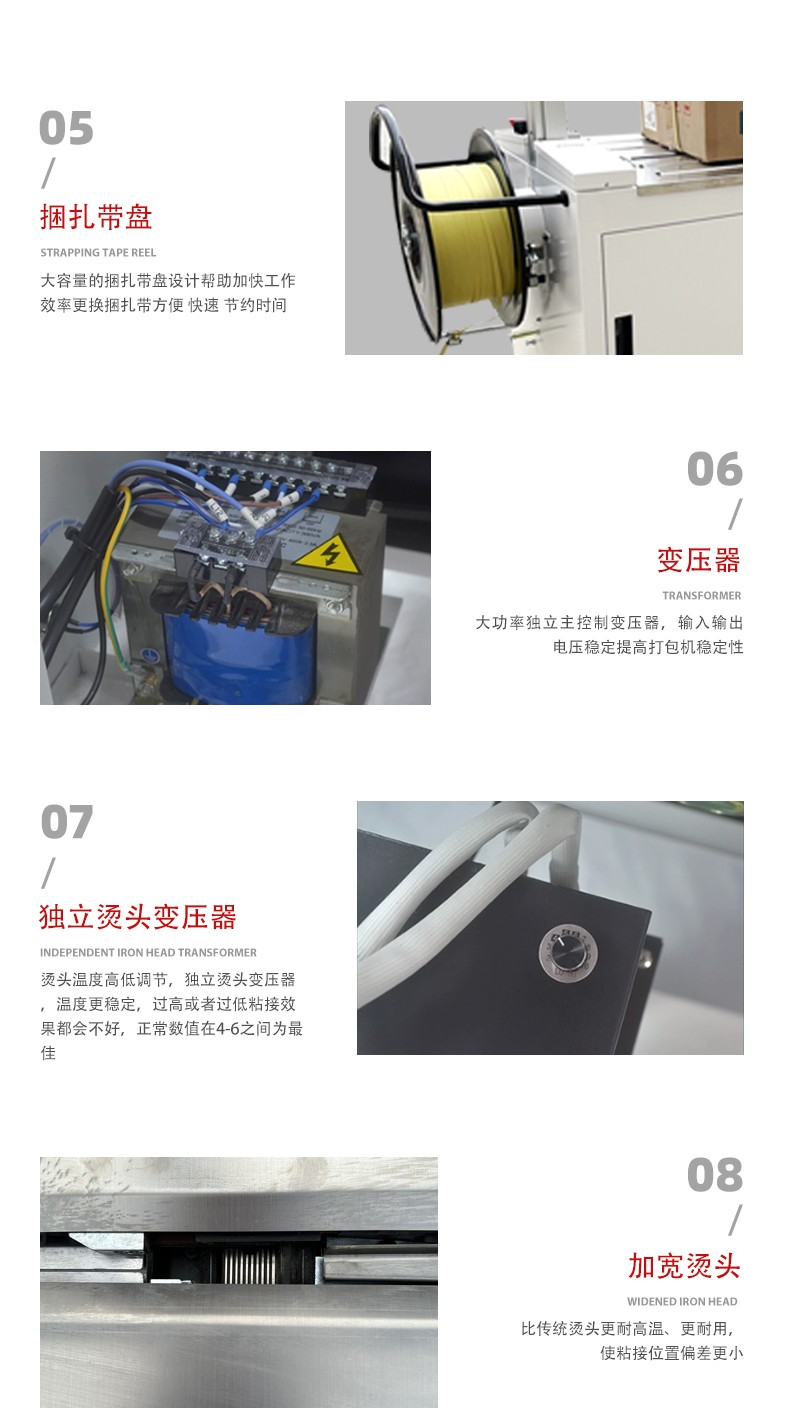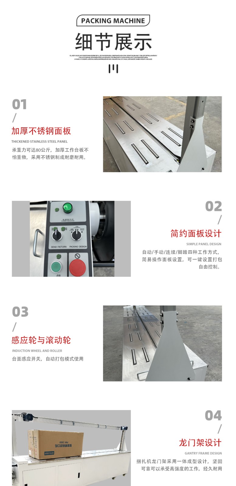 • 能夠精確控制打包帶的使用長度,避免了人工打包時可能出現(xiàn)的打包帶浪費(fèi)現(xiàn)象,節(jié)約了包裝材料成本。