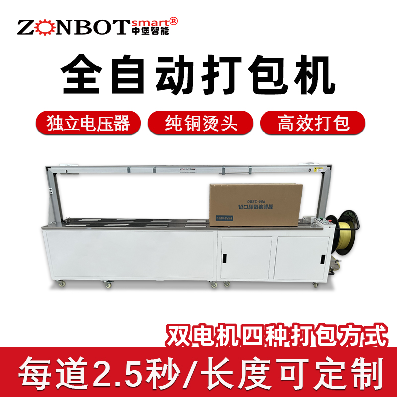 全自動打包機(jī)是一種高效、便捷的包裝設(shè)備,廣泛應(yīng)用于各個行業(yè)的產(chǎn)品包裝環(huán)節(jié),以下從工作原理、結(jié)構(gòu)組成、性能特點(diǎn)、應(yīng)用范圍等方面對其進(jìn)行簡要概述: 工作原理 全自動打包機(jī)一般采用摩擦熔接的原理進(jìn)行打包帶的連接。打包機(jī)通過電機(jī)驅(qū)動滾輪,使打包帶在滾輪的帶動下圍繞被包裝物進(jìn)行纏繞。當(dāng)打包帶的兩端重疊時,通過加熱元件對重疊部分進(jìn)行加熱,使其表面熔化,然后在一定的壓力下冷卻固化,從而實(shí)現(xiàn)打包帶的連接,完成打包過程。 結(jié)構(gòu)組成 送帶機(jī)構(gòu):負(fù)責(zé)將打包帶從帶卷中抽出并輸送到打包位置,通常由電機(jī)、滾輪、皮帶等組成,能精確控制