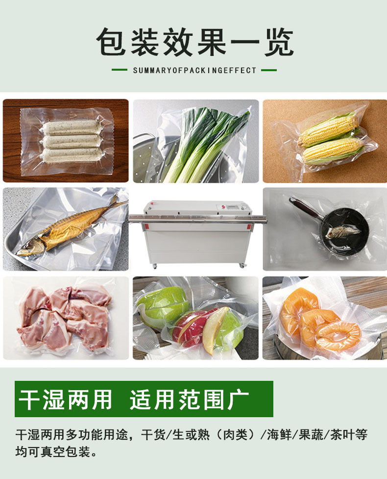 真空封口機能夠有效地延長食品的保質期,防止食物滋生微生物而發生霉變變質。由于大多數微生物的生存需要氧氣,通過真空封口機抽除包裝內的空氣,可以創造一個不利于微生物生存的環境,從而保護食物的新鮮度和口感。此外,真空封口機還能防止食物在冰箱中串味,特別是對于味道較大的食物,使用真空封口機可以避免冰箱內其他食物被污染。對于干貨如豆類、自曬的干果等,真空封口機也能有效防止潮氣和蟲害,保持干貨的質量。