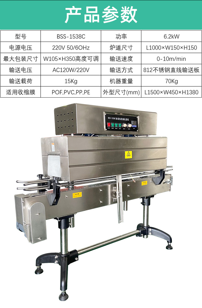 熱收縮機的主要應用領域是食品、飲料、醫藥和化工行業。在這些行業中,熱收縮機可以用于各種包裝的收縮,如瓶裝、罐裝、袋裝等 熱收縮機的功能和工作原理 熱收縮機具有送料、襯料、封切、收縮、冷卻、定型的全自動功能。熱收縮機采用國際先進的薄膜恒溫熱封技術,封口清晰牢固