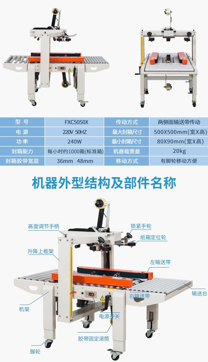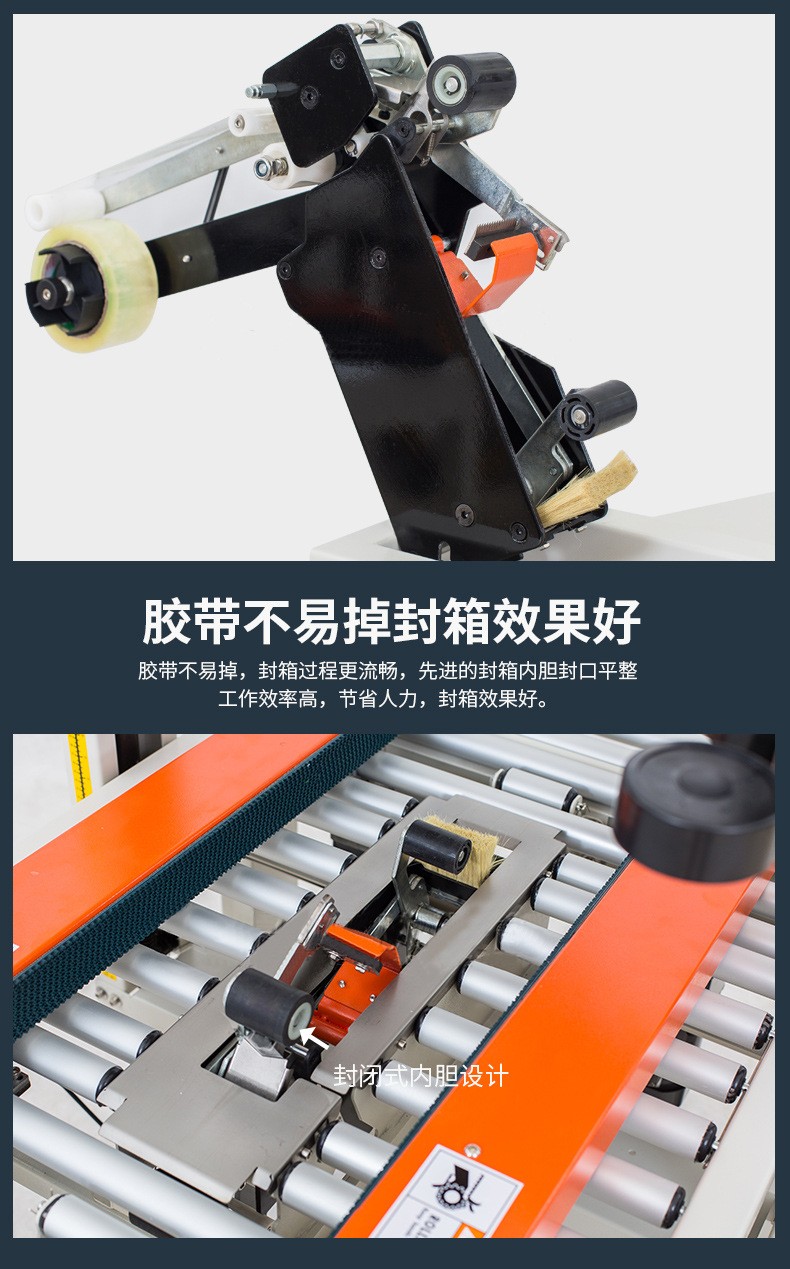 封箱機主要適用于紙箱的封箱包裝,既可單機作業,也可與流水線配套使用,它可單箱作業,也可與紙箱成型開箱機、裝箱機、貼標機、捆包機、棧板堆疊機、輸送機等設備配套成包裝流水線使用,為包裝流水線作業必須的設備。