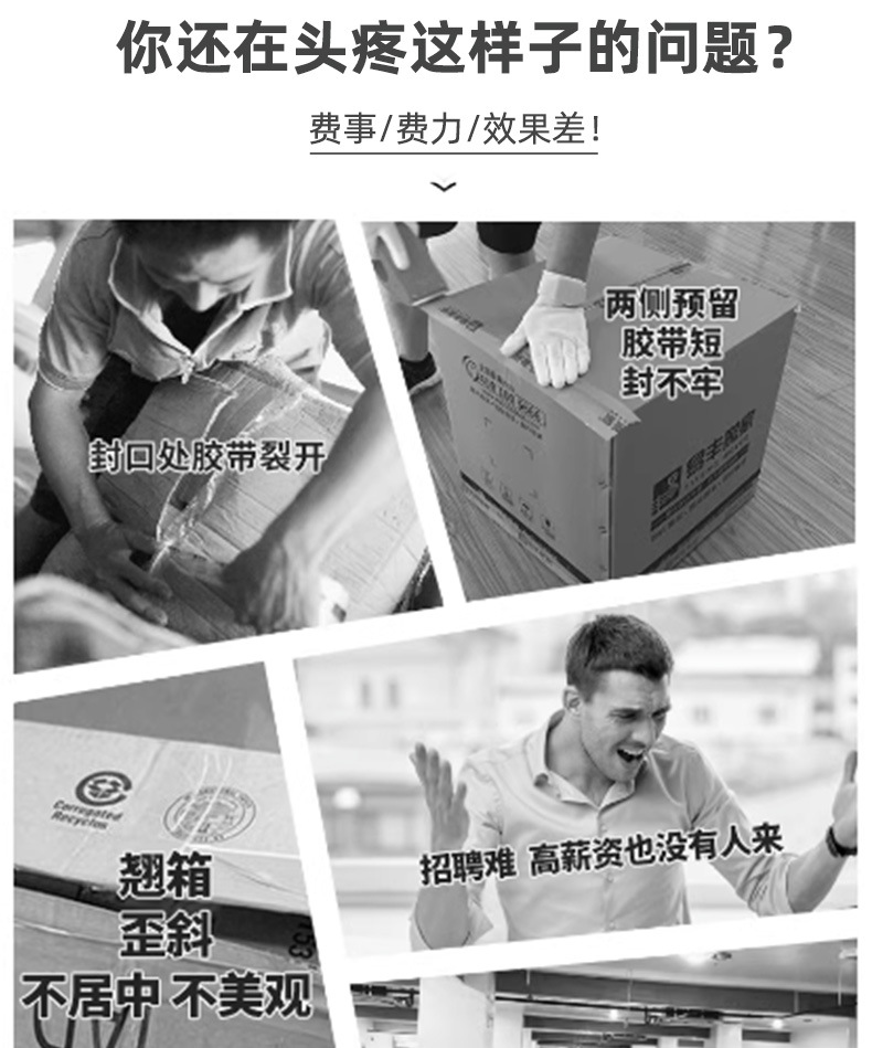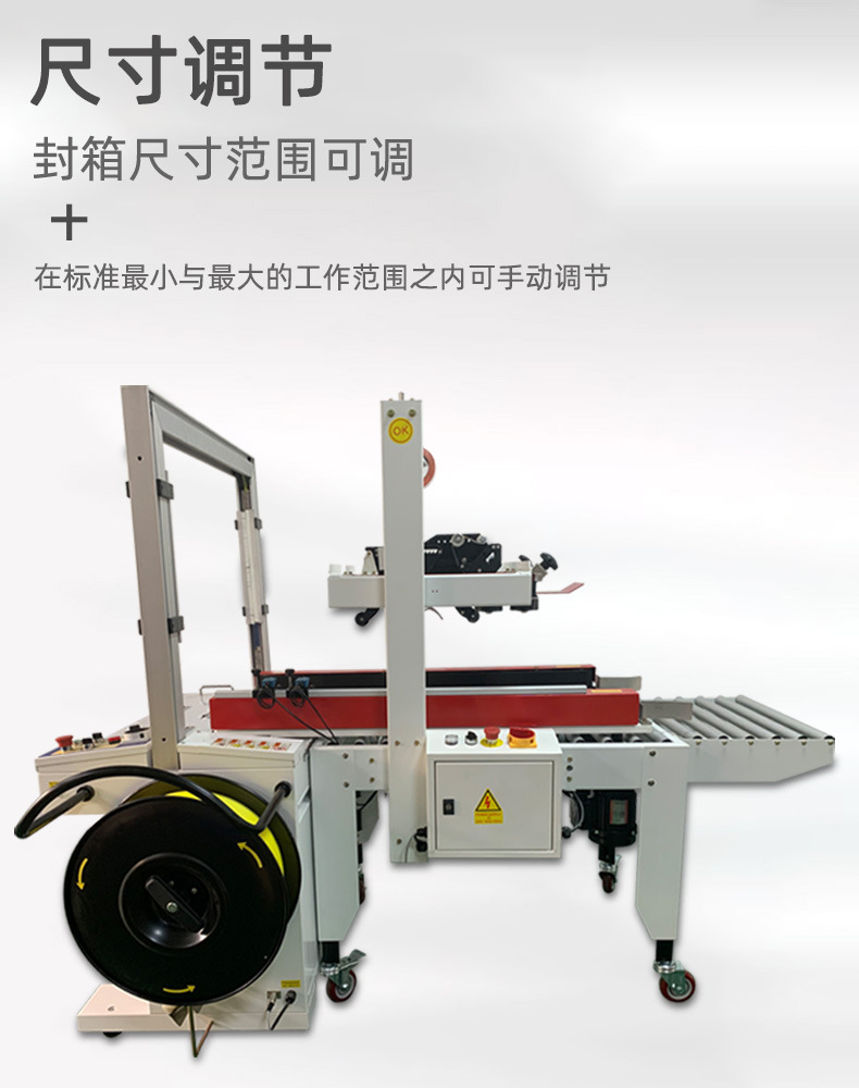 封箱打包一體機還支持加工定制,?可以根據客戶需求進行特殊定制,?滿足不同行業的包裝需求。?在食品、?醫藥、?日化等行業,?封箱打包一體機通過自動化的方式,?實現了對產品的快速包裝,?提高了生產效率,?同時也保證了產品的安全性和衛生性。?這種機器的使用,?不僅節省了人力,?還提高了工作效率,?降低了危險系數,?是現代化生產線上不可或缺的設備之一
